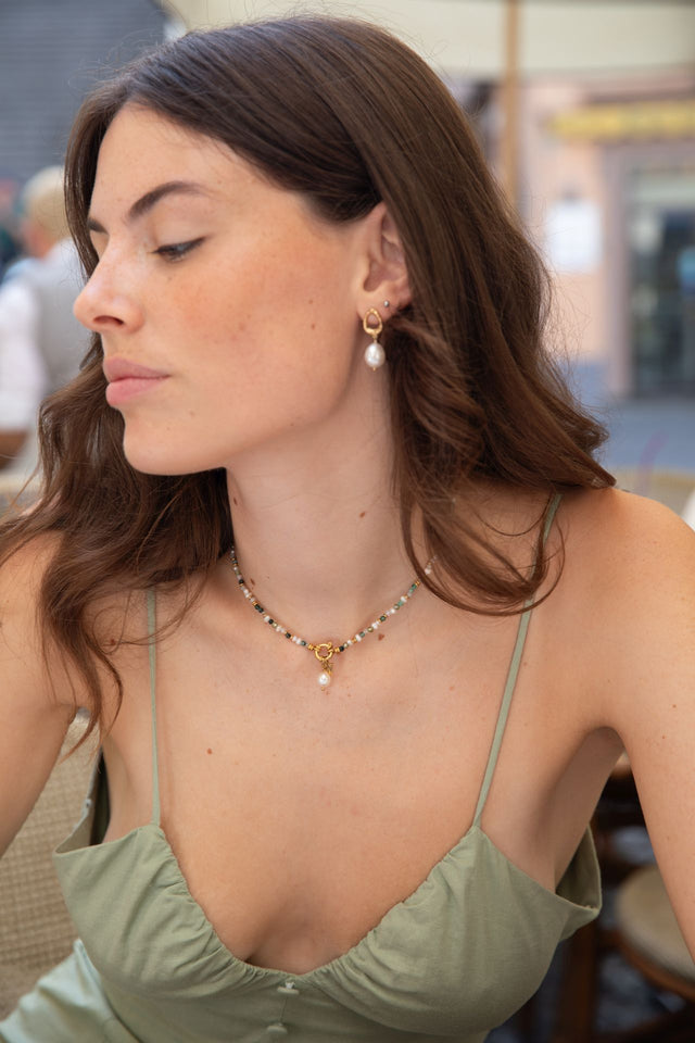 Our selection of Amalfi pearl jewellery reflects the unmistakable beauty of the sea. With white freshwater pearls, purple zirconia beads and natural stones, our earrings, necklaces, and bracelets add a very special touch to your look. The soft shimmer of the pearls, combined with the stylish design of the Amalfi collection, creates a unique balance between classic and modern aesthetics. PAUL VALENTINE Amalfi is your personal invitation to begin your journey to the magical Amalfi Coast. Choose a necklace or bracelet with white freshwater pearls to add a classic eye-catcher to your outfit. If you prefer something a little more colourful, the PAUL VALENTINE Amalfi jewellery with purple zirconia beads and natural stones are an excellent choice. These skilfully emphasise your individuality and are best worn with plain clothing.
